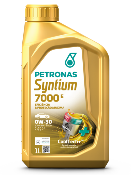 PETRONAS Syntium 7000 E 0W-30 é um lubrificante 100% sintético com tecnologia CoolTech+™ para combater o aquecimento excessivo do motor, absorvendo e transferindo com eficiência o calor excessivo e regulando a temperatura, protegendo os componentes críticos do motor de danos e perda de desempenho. Atende ou supera os mais exigentes requisitos dos motores de alto desempenho, sendo indicado para motores a Diesel médio com DPF, gasolina, etanol, GNV ou flex.